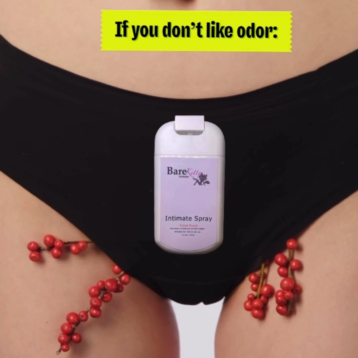 The Yoni Refreshing Spray has a mild sensual fresh peach scent. It will keep your kitty smelling amazing and fresh the entire day. This non-toxic spray was formulated with antibacterial properties. It neutralizes odor, kills bacteria and balances your pH as well as giving you a nice fresh feeling.